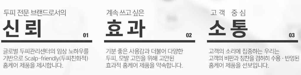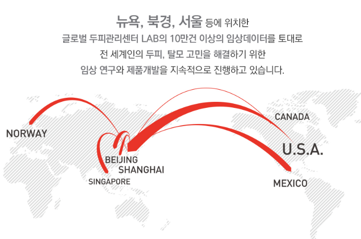 위에 공식 사이트에는 상세한 설명은 없지만 아래에서는 구체적인 설명을 접할 수 있었습니다. 다른 회사와는 달리 성분에 관한 설명보다는 어떻게 제품을 만들고 있으며 열심히 연구하고 있다는 이야기들을 하고 있었습니다. 특이한 건 두피케어 센터도 있습니다. 전문적인 느낌이 드는 곳입니다. 사업을 하시는 분들은 관심을 가지실 수 있겠습니다.