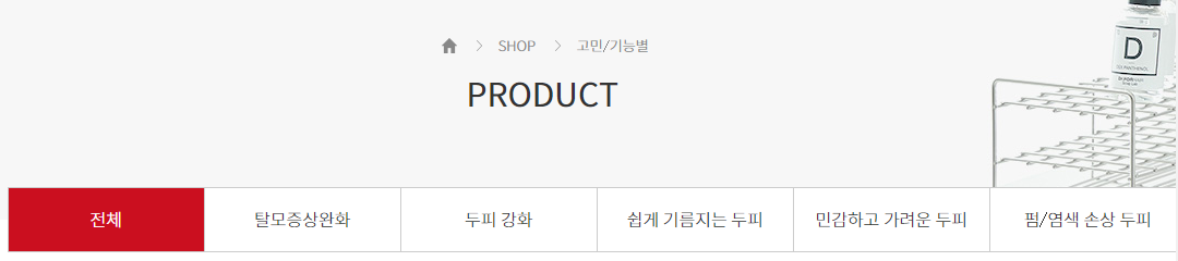 이제 진단을 마치셨다면 아래에서 본인에게 맞는 제품을 구입하시면 됩니다. 탈모, 두피 강화, 염색 손상 등이 있죠.